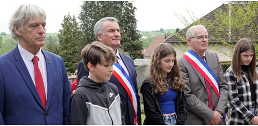 Mai 2023 : Commémoration de la victoire du 8 mai 1945 en présence de jeunes Extrait article remis au DNA A l’occasion de la commémoration de la victoire du 8 mai 1945, Ernolsheim-lès-Saverne a rempli son devoir de mémoire, accompagné par des jeunes. Le maire Alfred Ingweiler a voulu innover en associant Maeva, Gwenaelle et Paul, trois jeunes du village, à la cérémonie. Après avoir salué et remercié de leur présence Jean-Claude Buffa, conseiller d’Alsace, les conseillers municipaux, le maire honoraire Robert Zimmerman, les présidents, les présidentes et les représentants des associations locales, ainsi que la trentaine de concitoyens qui s’étaient déplacés ce lundi 8 mai, ils ont déposé, ensemble, la gerbe devant le monument aux morts. Puis l’édile a lu le message du ministre des armées. Comme tous les ans, il a tenu à le compléter en rappelant la situation particulière alsacienne des Malgré-nous et Malgré- elles. Pour appuyer cette particularité trop souvent oubliée par les autorités gouvernantes, les trois jeunes ont chacun lu une lettre de Malgré-nous et ont ensuite, tour à tour, cité les noms gravés sur le mémorial. Comme tous les ans aussi, Joël et Pierrick Aron, de la batterie fanfare locale, ont assuré la Sonnerie aux morts et la Marseillaise. Élus et enfants du village devant le monument aux morts. Photos DNA